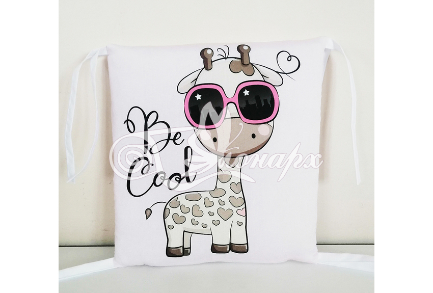 В наборе 4 плоских подушки на замочках для удобства стирки и с завязками для фиксации к кроватке.