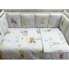 Комплекты в детскую кроватку для новорожденных с бортиками подушечками