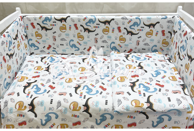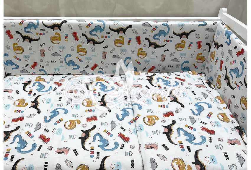 Бортики СО СЪЕМНЫМИ ЧЕХЛАМИ в кроватку: защитят Вашего малыша от ушибов, сквозняков, солнечных лучей и не дадут малышу запутаться в прутьях кроватки. - Простыня на резинке 60х120 см (подходит для стандартной кроватки)