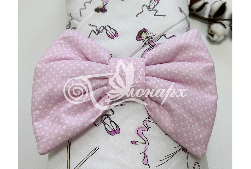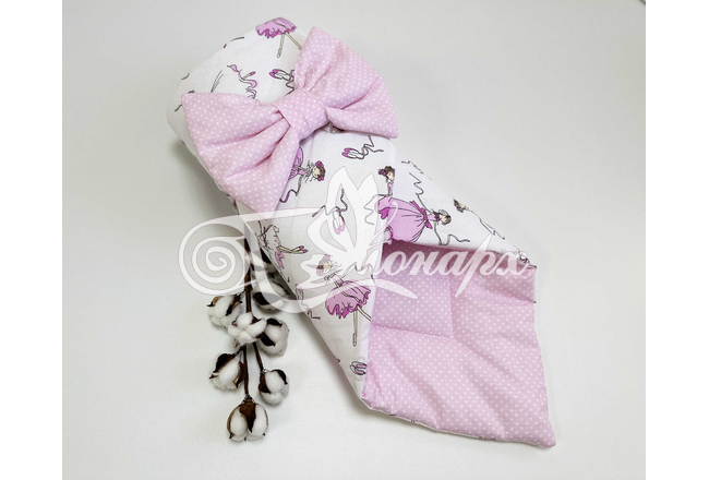 ​Конверт фиксируется поясом на резинке с бантом.