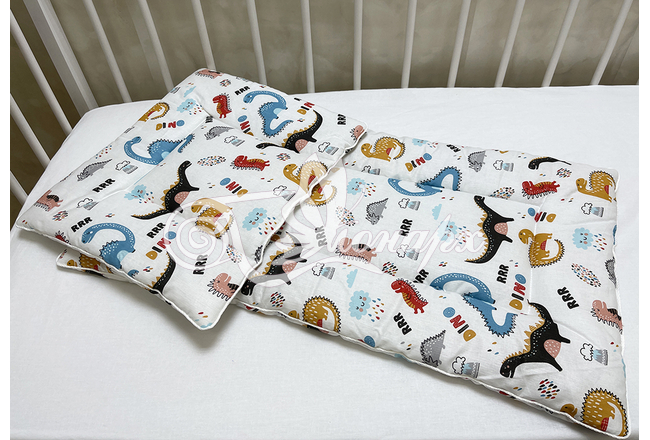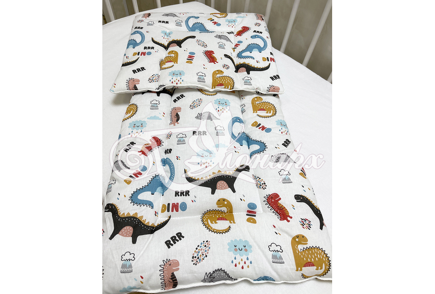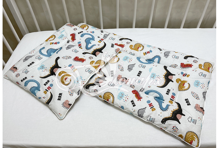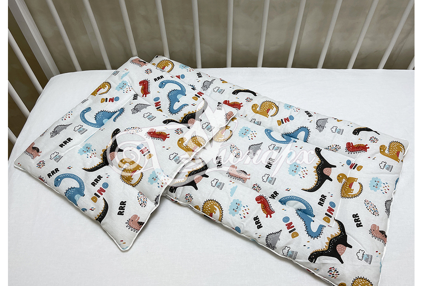 Каждое изделие из набора простегано, матрасик и подушка обработаны декоративным кантом.