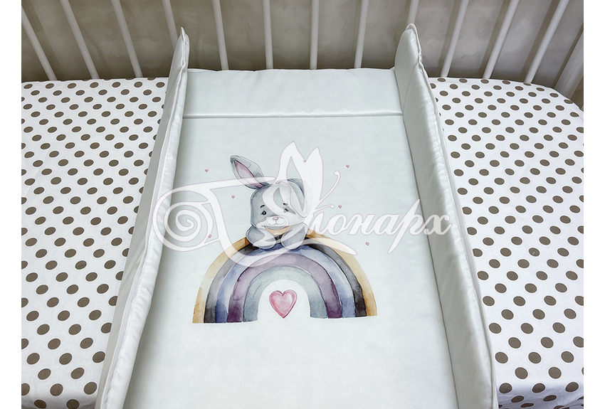 Бортики сгибающиеся, выполняют защитную функцию. Изделие предназначено для малышей с рождения до годика, выполнено из плащевой ткани, наполнитель волтекс.