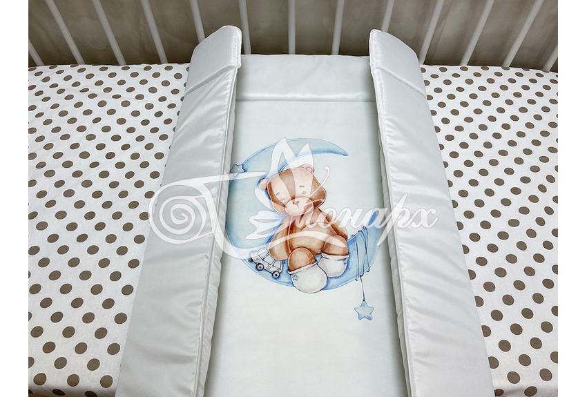 Бортики сгибающиеся, выполняют защитную функцию. Изделие предназначено для малышей с рождения до годика, выполнено из плащевой ткани, наполнитель волтекс.