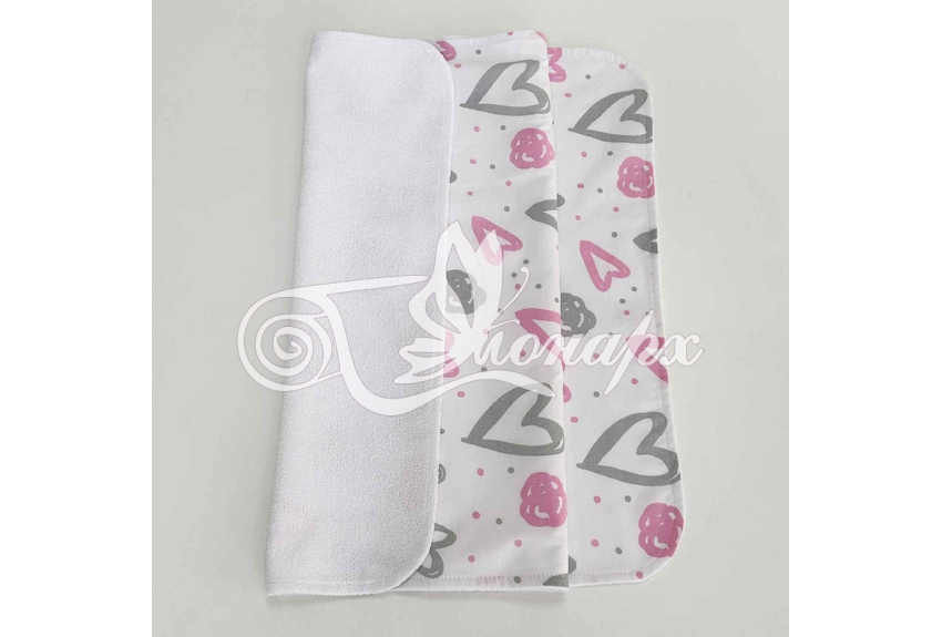 • Верхний слой – мулитон (изготовлена из - мягкой махры и непромокаемого слоя ПВХ). Благодаря такому строению на пеленке комфортно лежать (в отличие от клеенчатого или полиэтиленового непромокаемого слоя).
